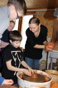 Гончарный мастер Игнахина Светлана, рассказав детям об истории и технологии гончарного дела, провела мастер-класс по изготовлению гончарных изделий. Под чутким и добрым руководством мастера дети смогли поработать на гончарном круге и изготовить настоящую глиняную посуду.