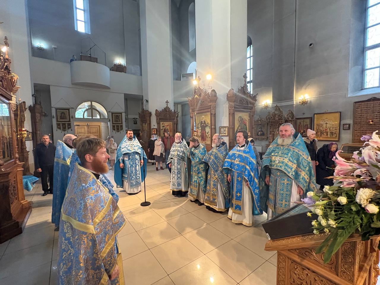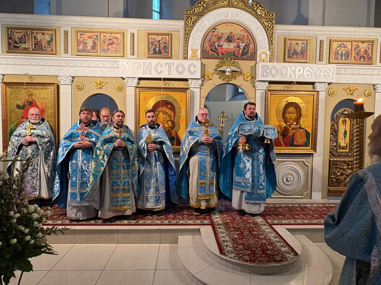 25 сентября в день отдания праздника Рождества Пресвятой Богородицы соборное богослужение в Преображенском храме города Жуковского возглавил благочинный Жуковского церковного округа иерей Димитрий Денисов. Ему сослужили настоятели и клирики приходов Жуковского благочиния.