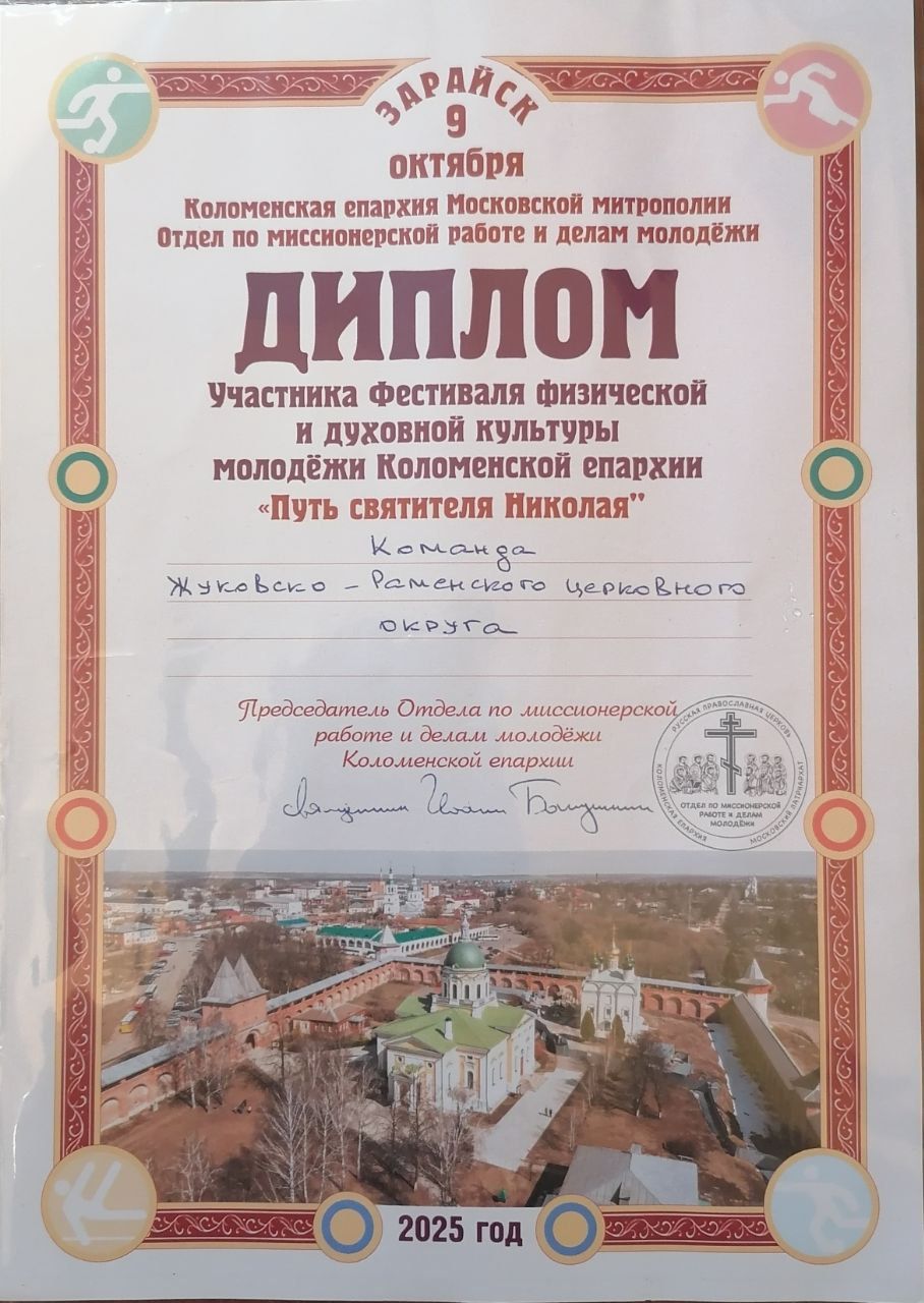 9 октября 2025 года в г. Зарайск состоялся Фестиваль физической и духовной культуры молодёжи Коломенской епархии, посвященный 800-летию перенесению образа свт. Николая из Корсуни в Зарайск. Мероприятие прошло в формате духовно-спортивного ориентирования по экологической тропе вдоль реки Осётр и состояло из двух этапов.