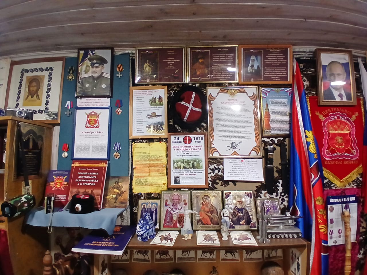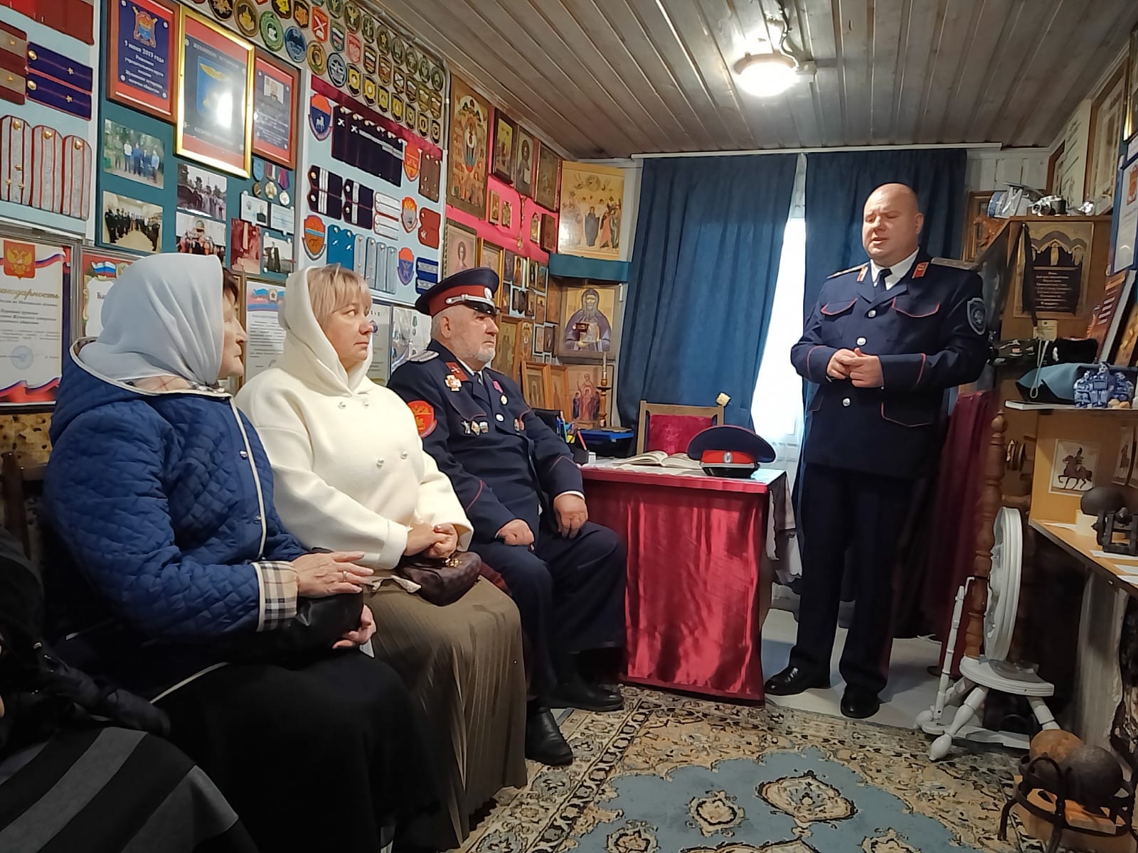 Перед освящением музея была совершена заупокойная лития в память первого атамана Жуковского ХКО сотника Евгения Мануйлова (†08.10.2021). После завершения церемонии открытия музея и экскурсии по культурному центру состоялся отчётный круг Жуковского ХКО, на котором казаки обсудили текущие дела общества и планы на будущее.
