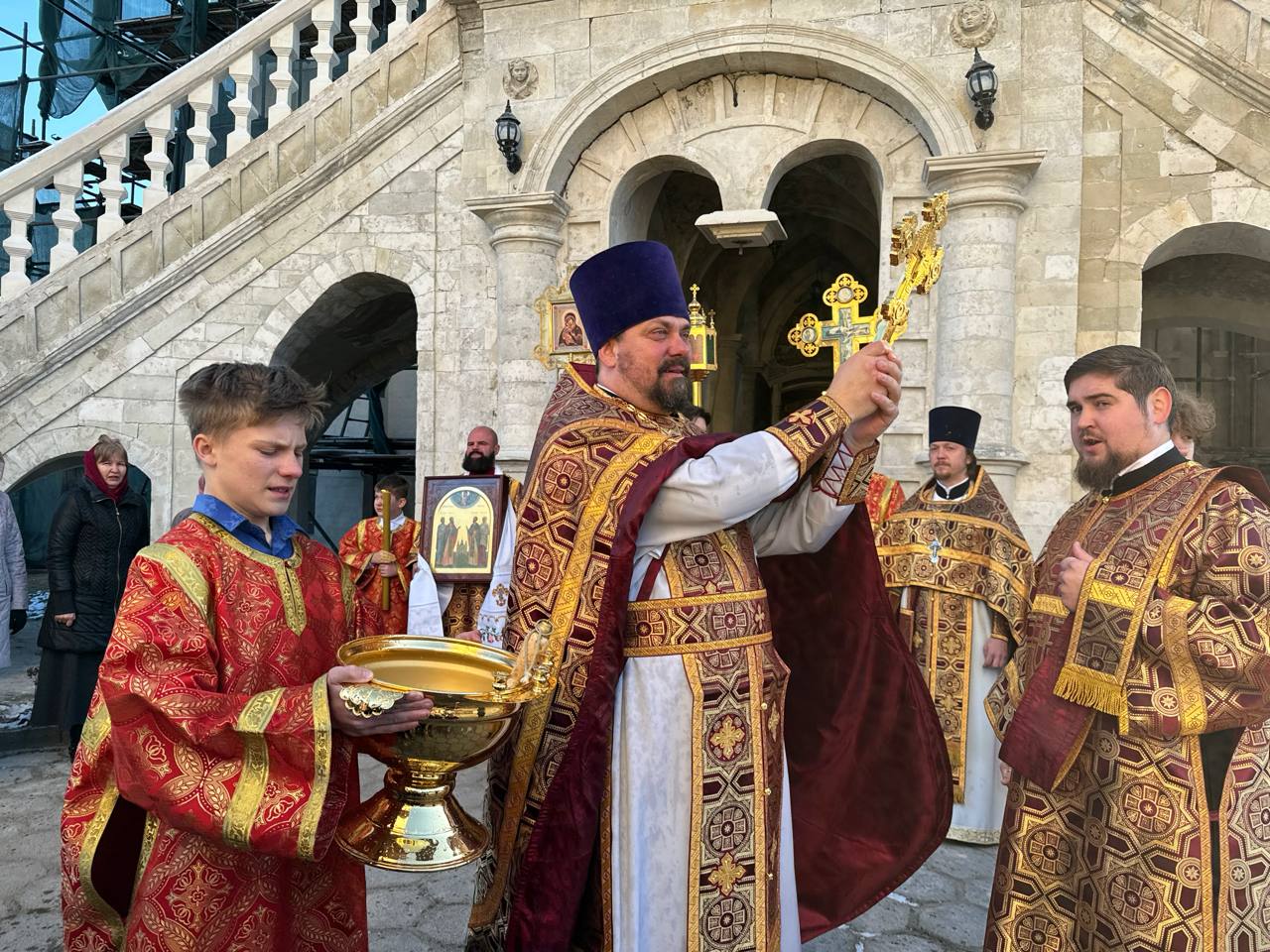 По окончании Божественной литургии был совершен крестный ход и молебен.