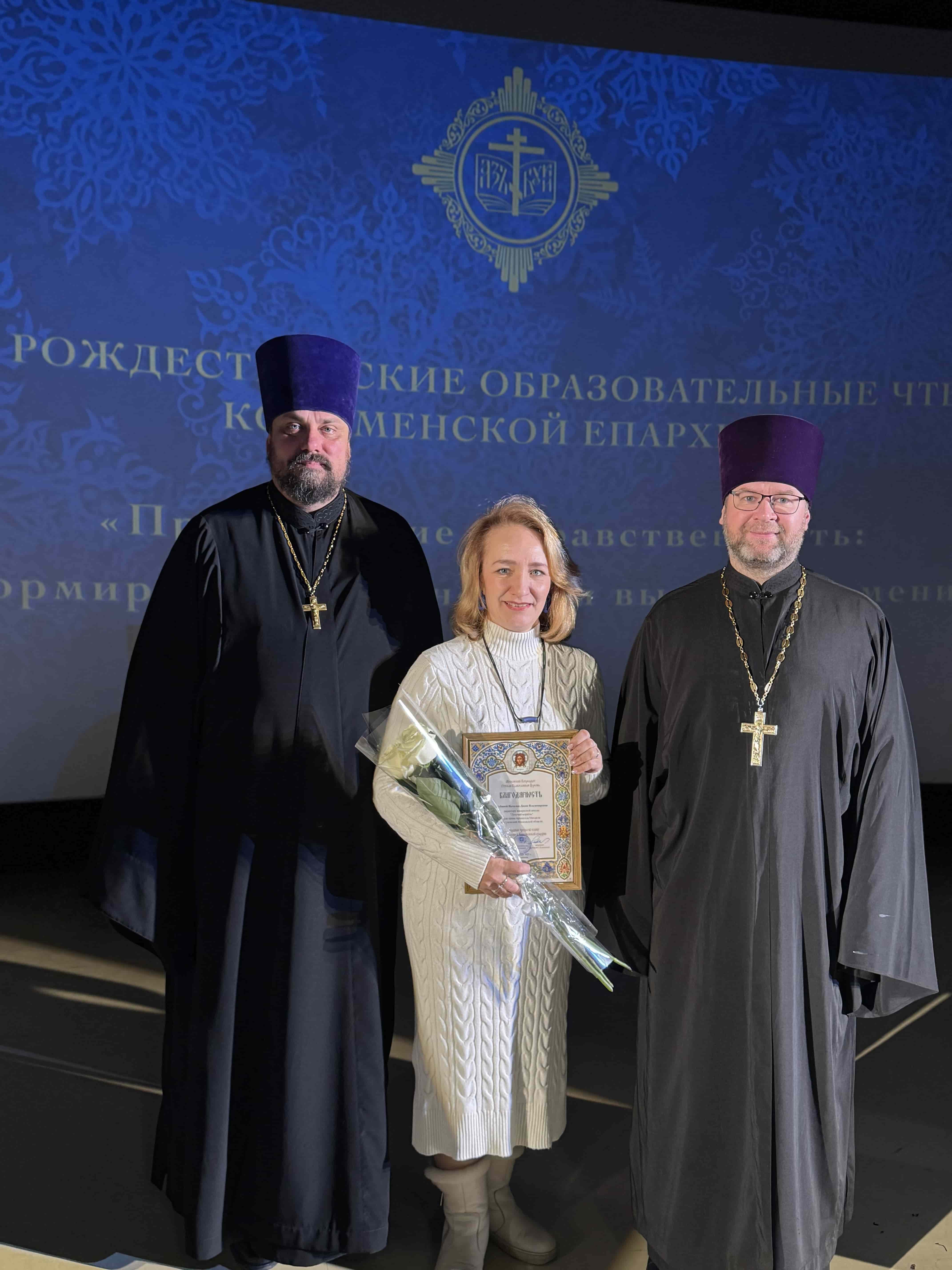 Среди награжденных учитель МБОУ СОШ №15, директор воскресной школы «Летучий корабль» при храме Архангела Михаила города Жуковский Шубина Наталья-Диана Владимировна.