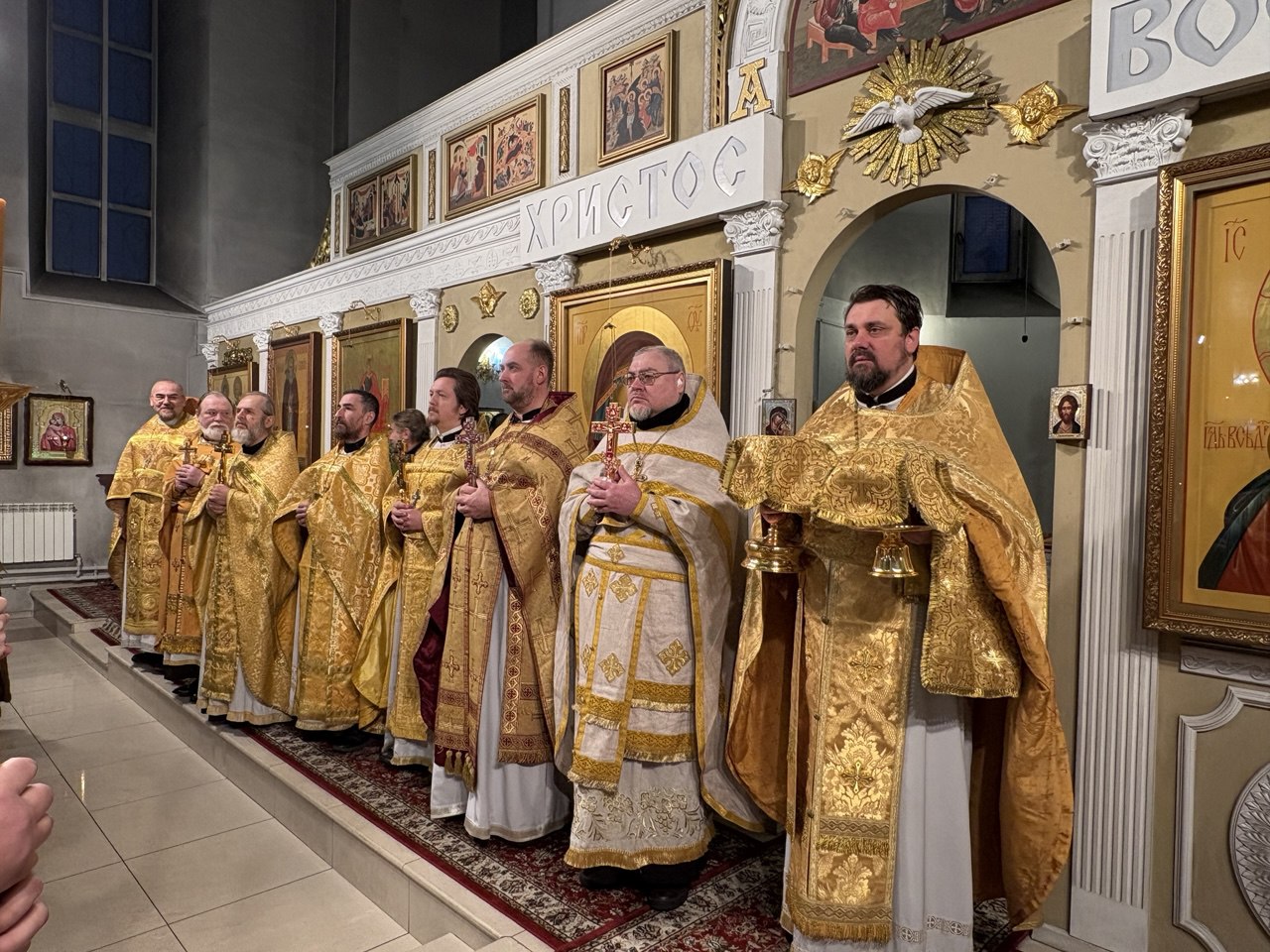26 декабря, в Преображенском храме города Жуковский прошло соборное служение Божественной литургии, которое возглавил благочинный Жуковского церковного округа иерей Димитрий Денисов в сослужении духовенства благочиния.
