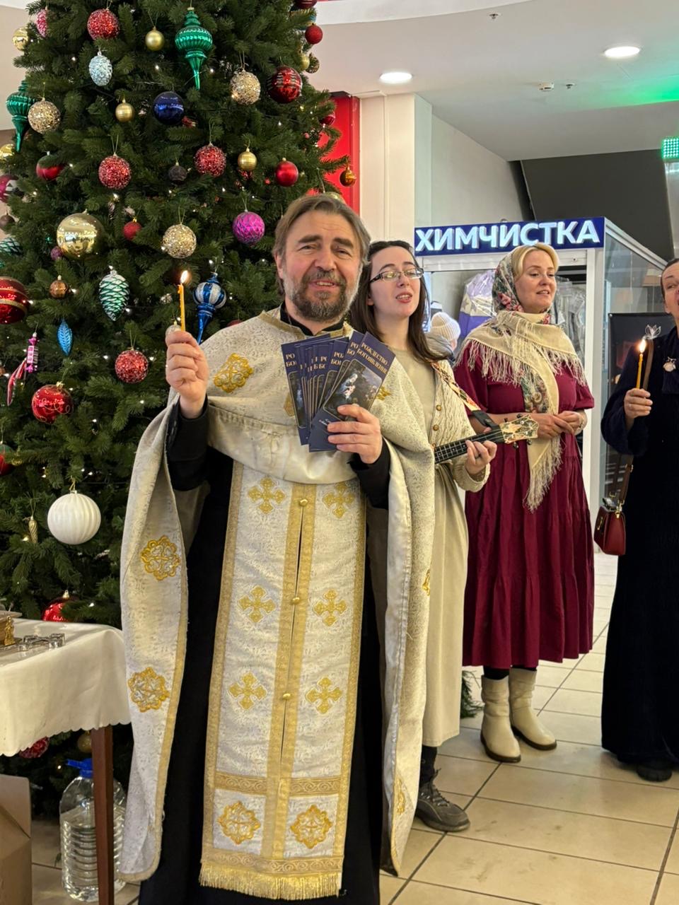 12 января 2026 в рамках проведения праздников Рождества и Крещения Господня в Торговом Центре «Океан» в г. Жуковский состоялась миссионерско-просветительская акция с раздачей буклетов и общением с людьми, посещающими торговый центр и его сотрудниками. Клирик храма Преображения Господня протоиерей Александр Лыков и хор под руководством регента Ларисы Язовой совершили краткий водосвятный Рождественский молебен и поздравили всех присутствующих с праздниками Рождества Христова и грядущего Богоявления. Пение Рождественских колядок в стенах торгового центра явилось продолжением и дополнением к общей молитве. Это уже не первая праздничная акция, которая проводится в торговом центре и неизменно встречает горячий отклик в лице его посетителей.