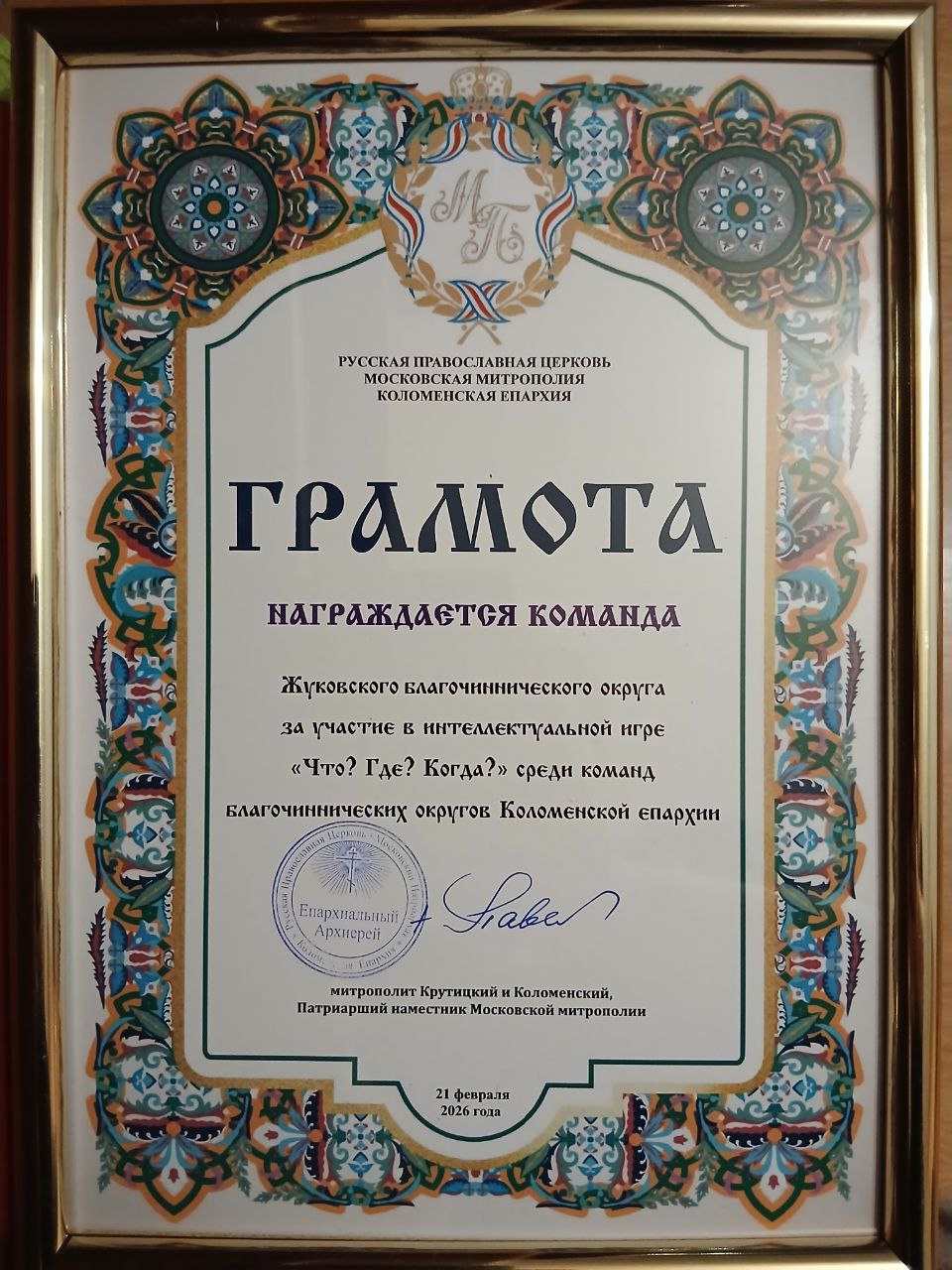 « IV ежегодная епархиальная интеллектуальная игра «Что? Где? Когда?» в городе Егорьевске