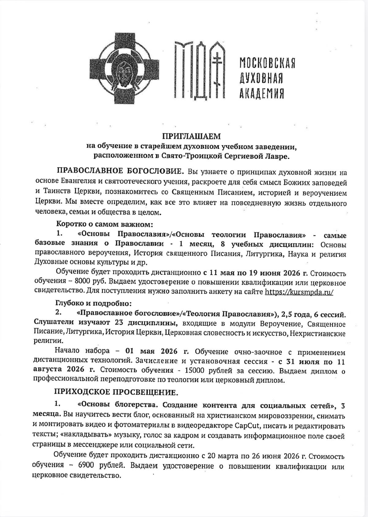РАСПИСАНИЕ БОГОСЛУЖЕНИЙ