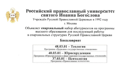 « Российский православный университет святого Иоанна Богослова объявляет епархиальный набор абитуриентов на программы высшего образования